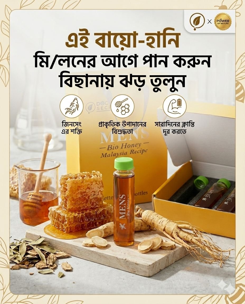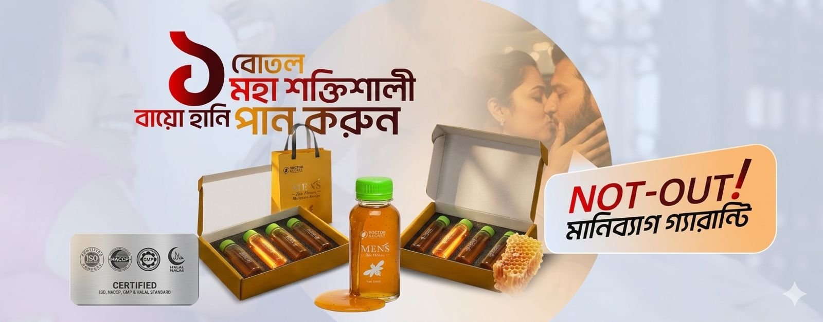Doctor Secret Men’s Bio Honey প্রাকৃতিক মধু ও বাছাই করা ভেষজ উপাদানে তৈরি এক বিশেষ হারবাল ফর্মুলা।